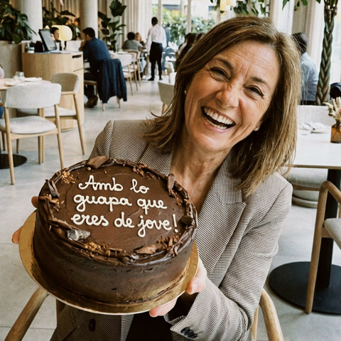 Pels 60 anys de la meva germana vaig decidir fer quelcom especial, doncs ella és molt moderna i no suporta les coses clàssiques. Encara ara està rient ! Tot un encert !